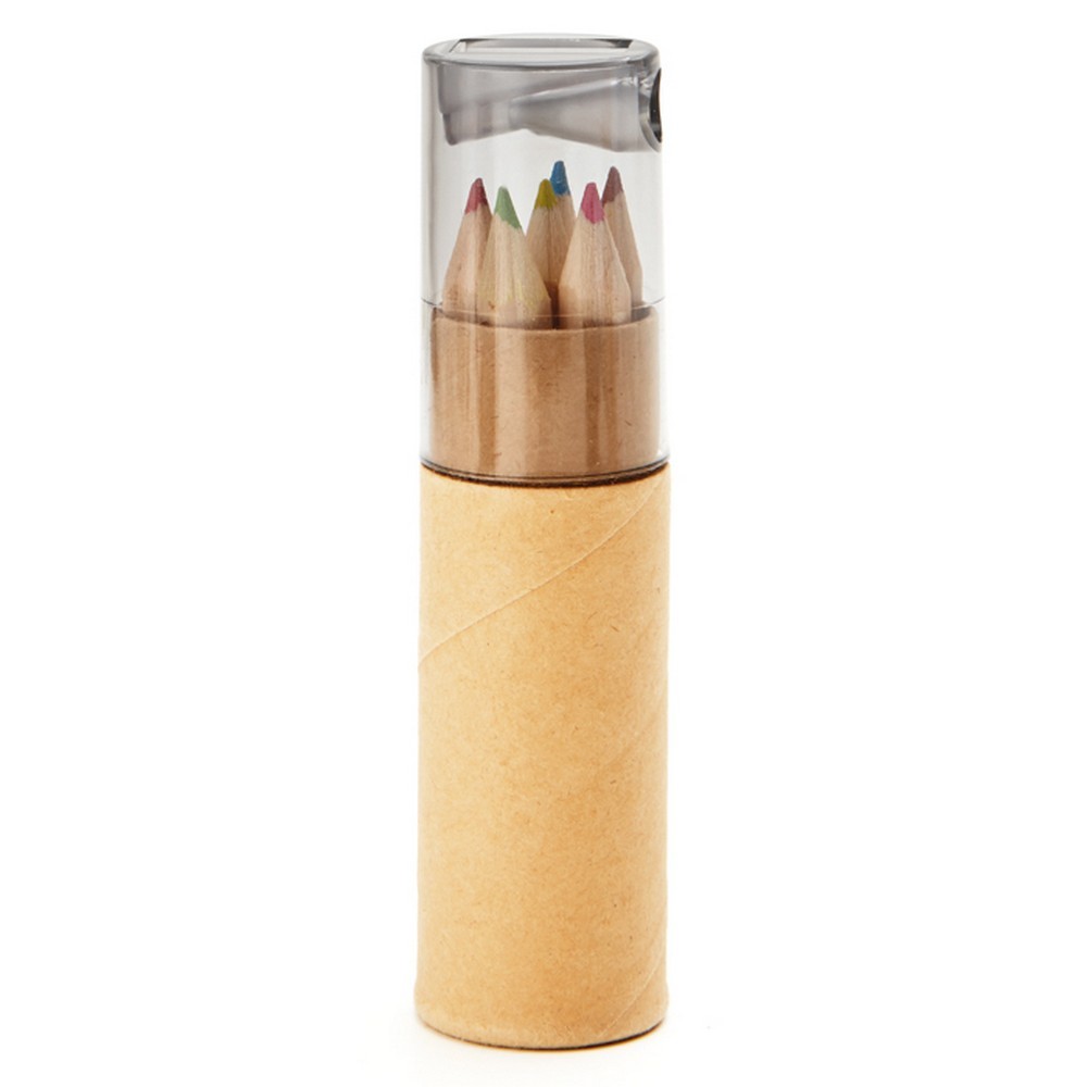 6 creioane colorate in tub cu capac prevazut cu ascutitoare.