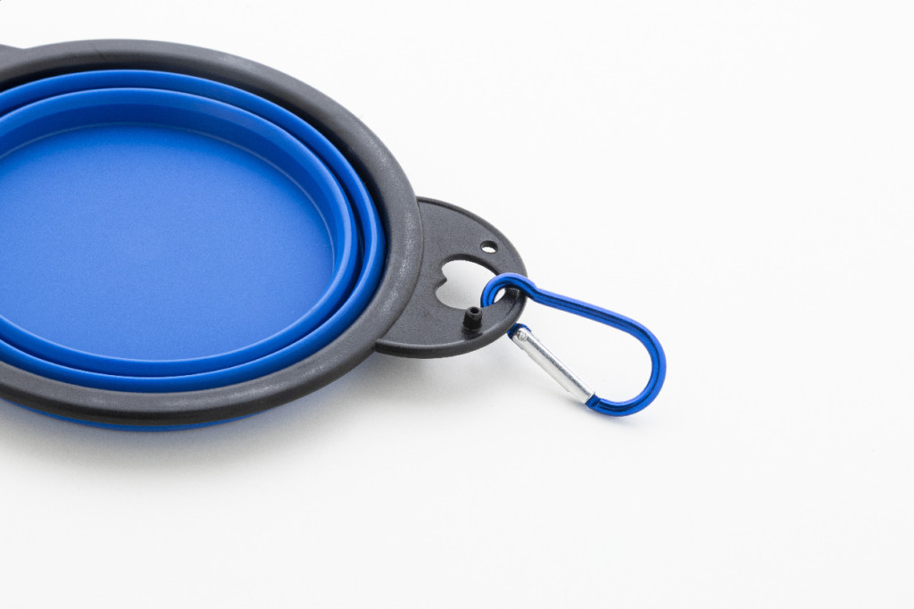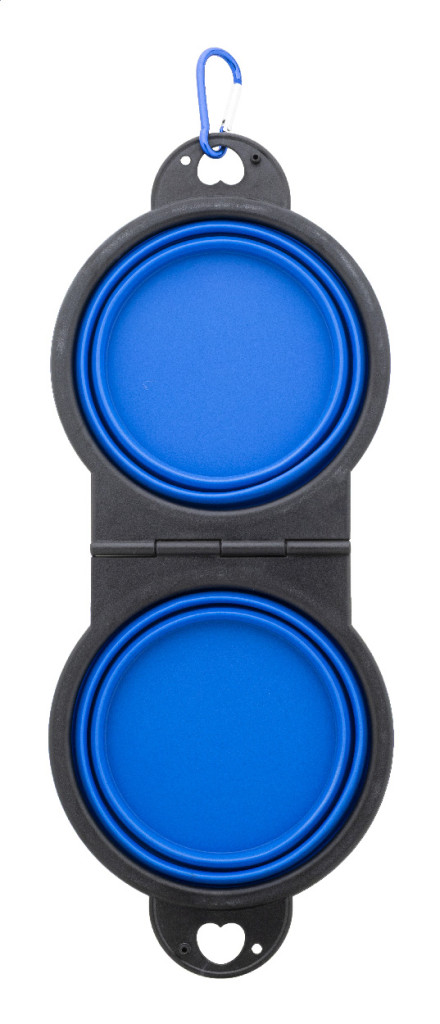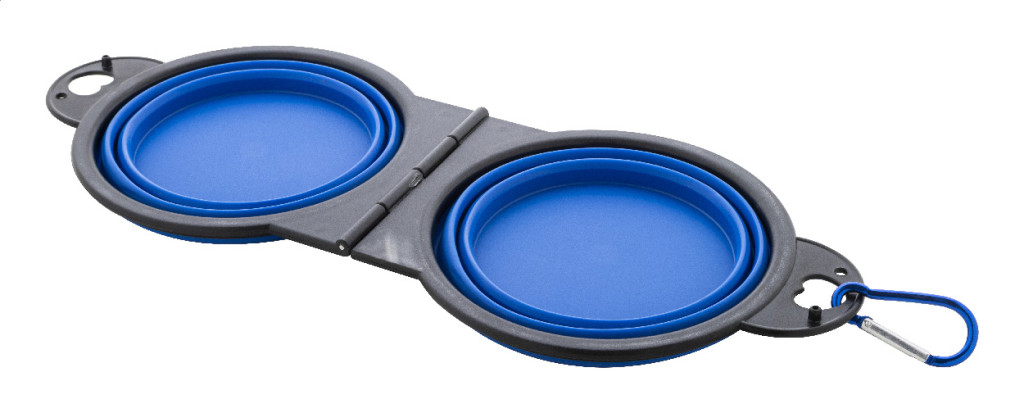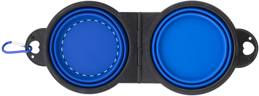 Bol pliabil pentru animale de companie, din TPE durabil, cu doua compartimente de 450 ml si carabina din aluminiu de culoare asortata.