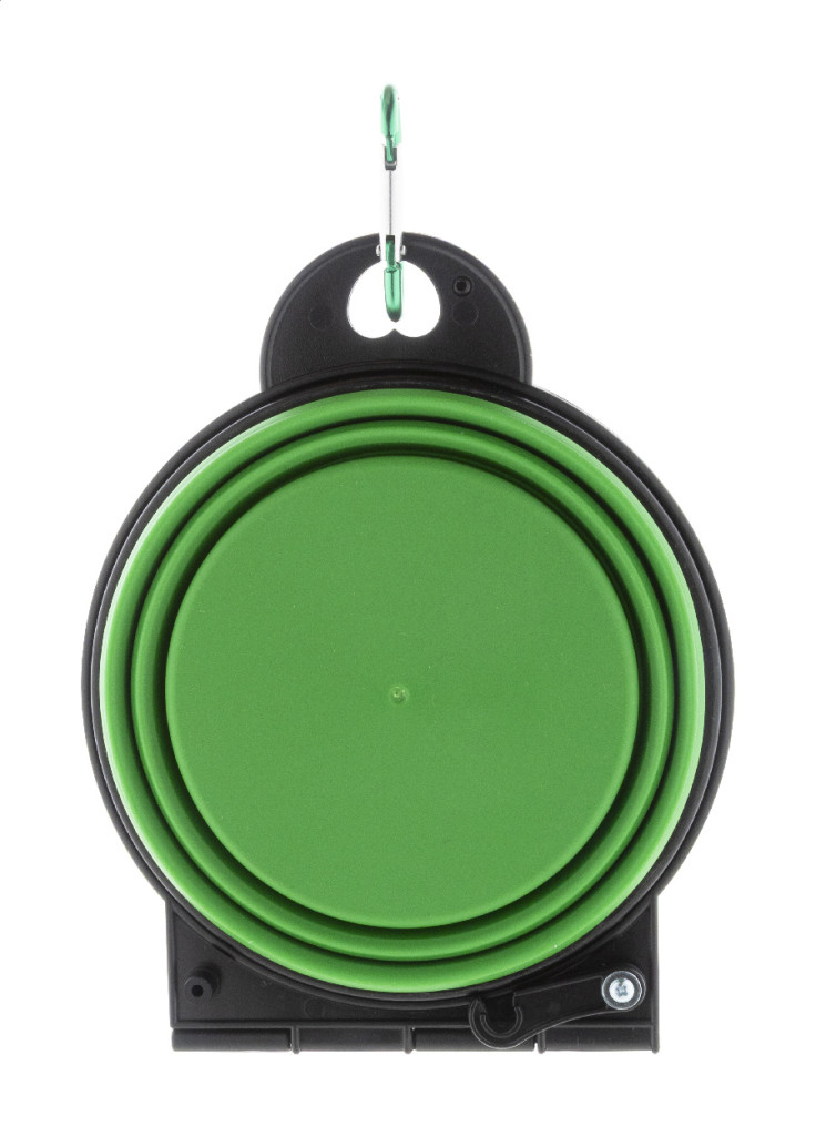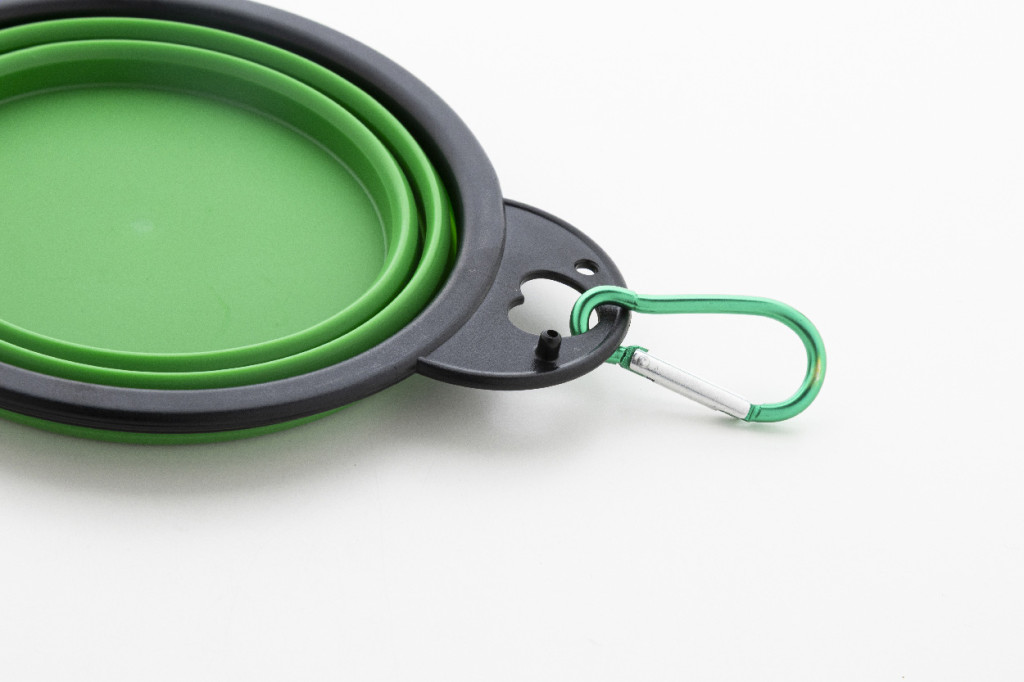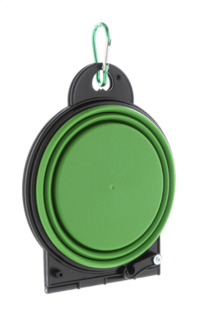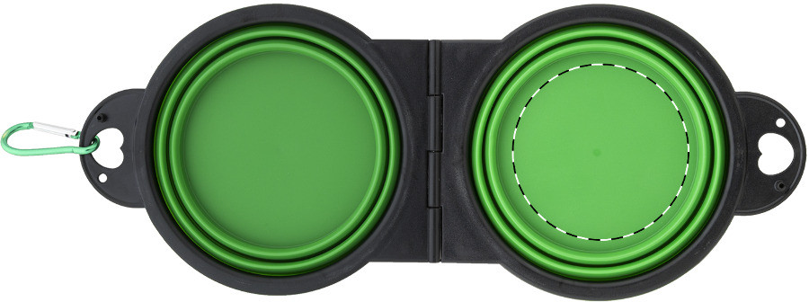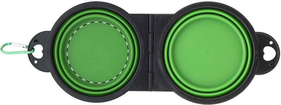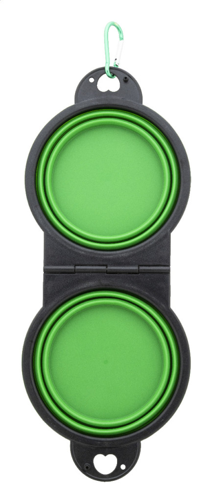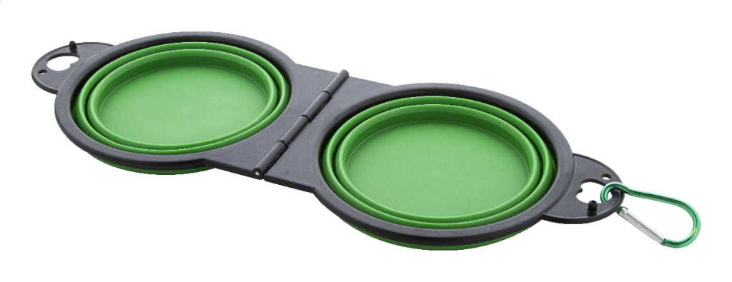 Bol pliabil pentru animale de companie, din TPE durabil, cu doua compartimente de 450 ml si carabina din aluminiu de culoare asortata.