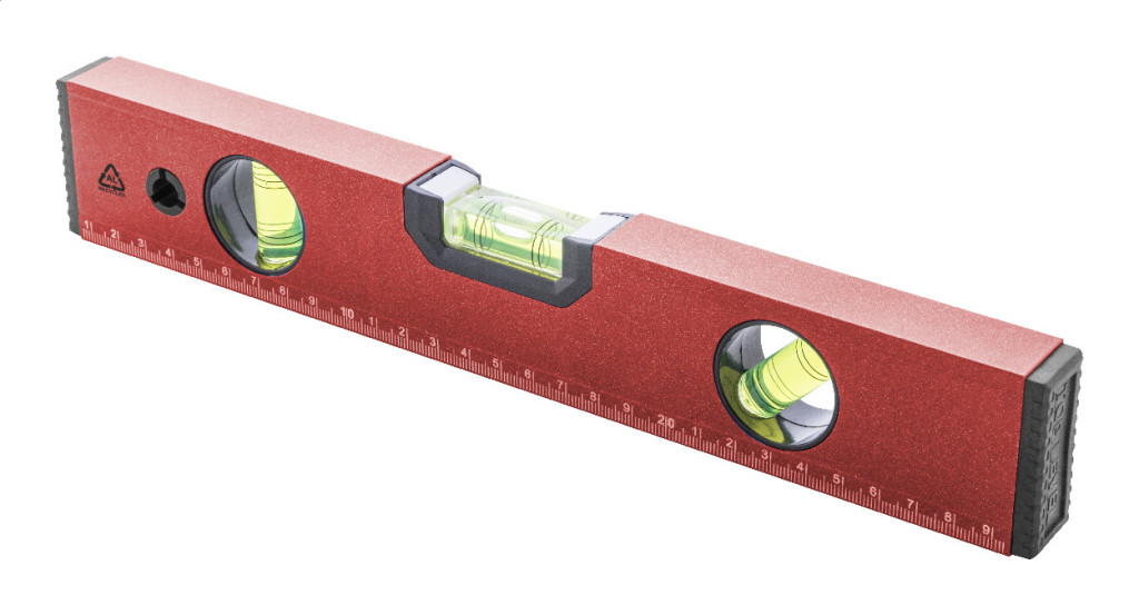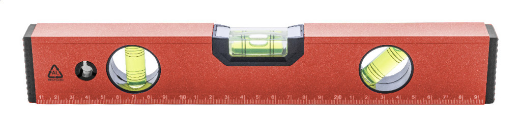 Boloboc din aluminiu reciclat, cu nivele triple (orizontala, verticala si la 45°) si rigla de 30 cm.