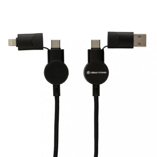 Cablu de incarcare 6-in-1 45W, Urban Vitamin, 42FEB230374, 120xØ0.4 cm, Poliester, TPE, Negru
