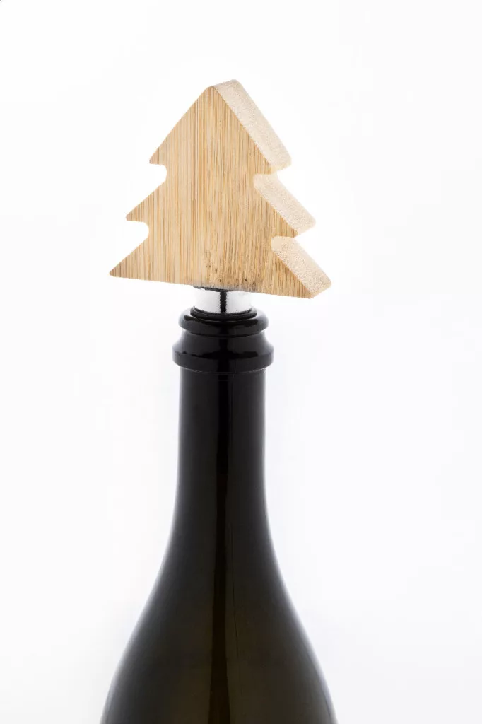 Dop pentru sticle de vin, metalic, cu decor in forma de brad din bambus.