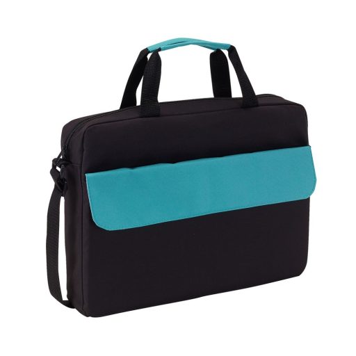 Geanta de documente cu inchidere cu scai, 39x29x7.5 cm, Everestus, 20SEP1097, Poliester, Negru, Turcoaz
