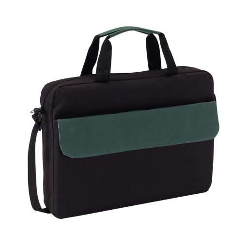 Geanta de documente cu buzunar frontal cu capac colorat cu inchidere tip scai, compartiment principal spatios cu fermoar, doua manere intarite in culori diferite, bretea de umar ajustabila.