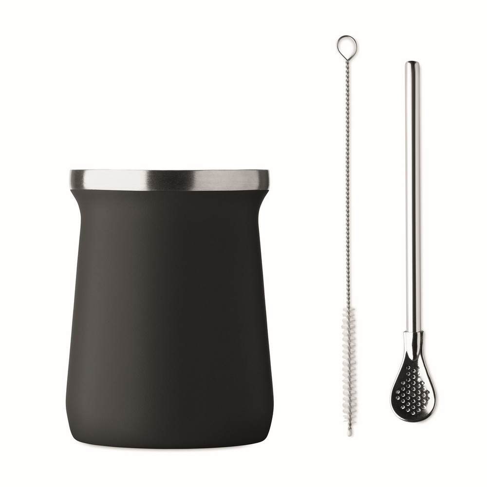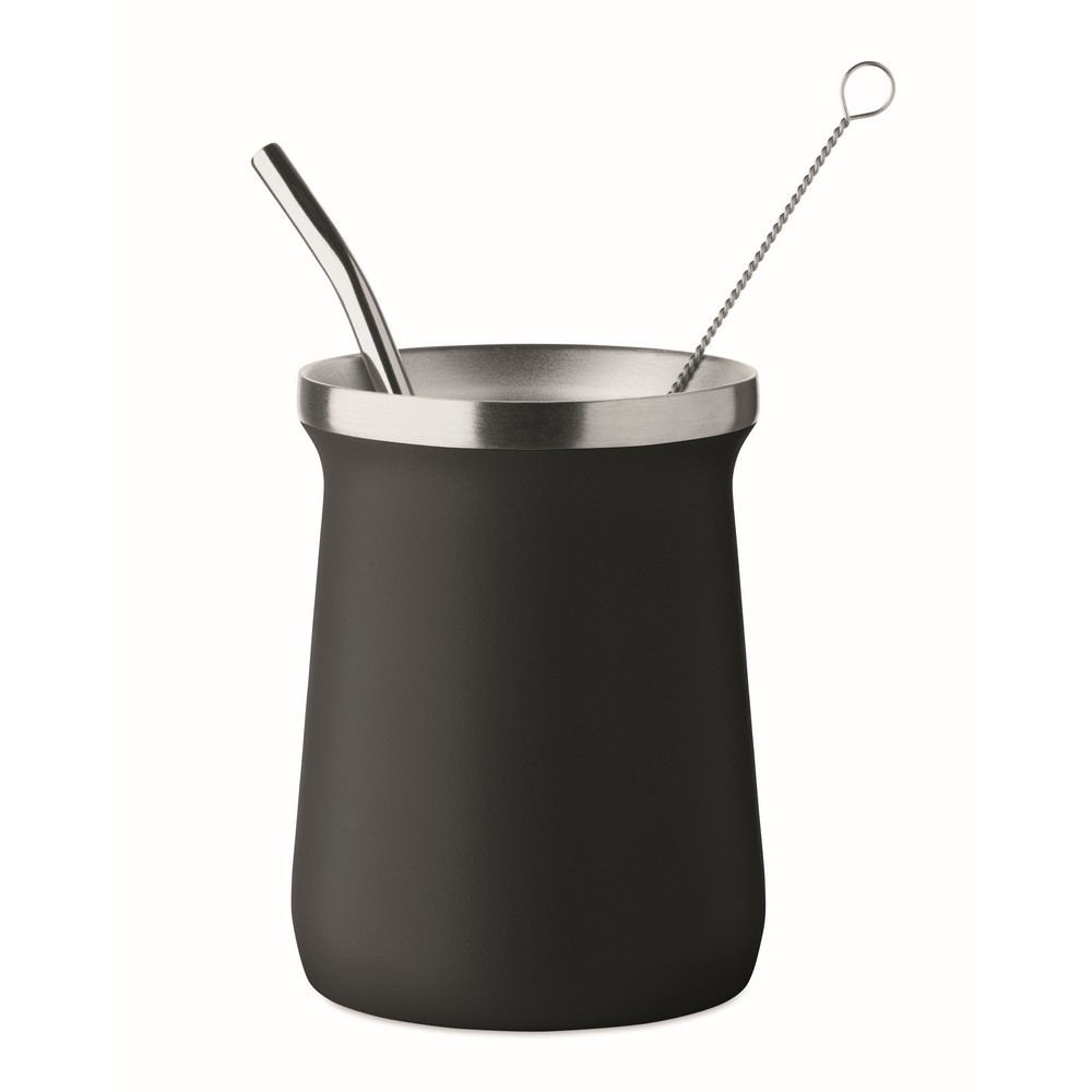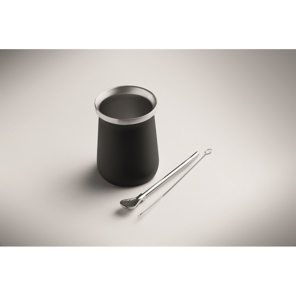 Pahar yerba mate cu perete dublu, 240 ml, Everestus, 2601E14127, Ø8x10.7 cm, Otel, Negru
