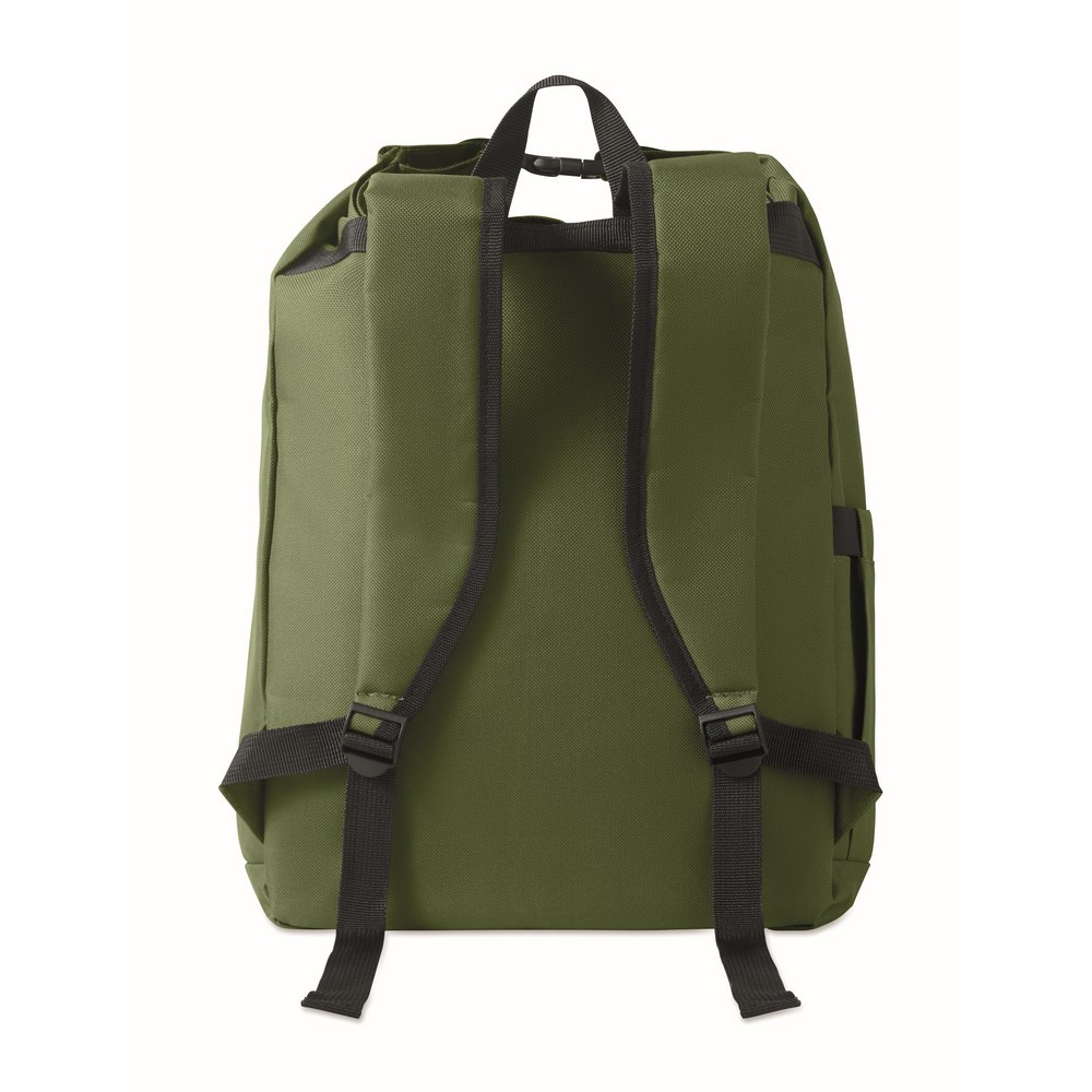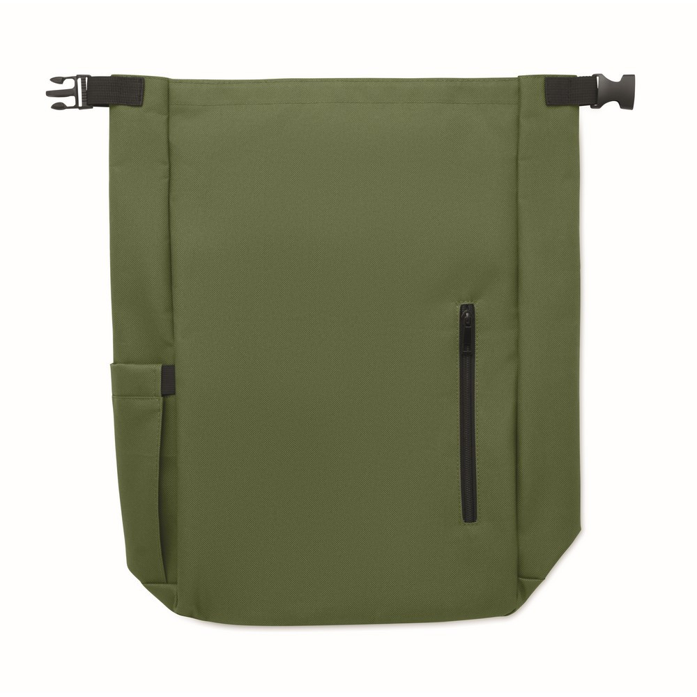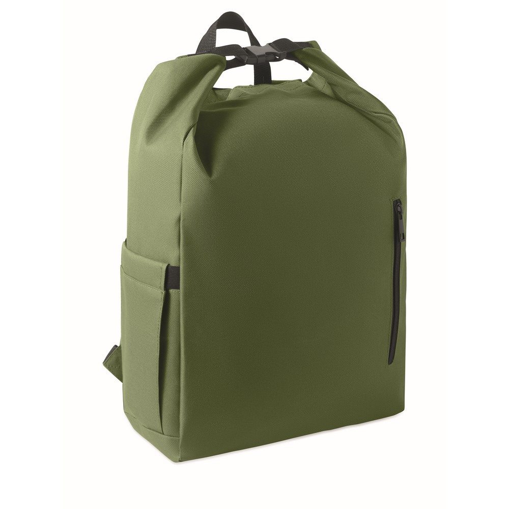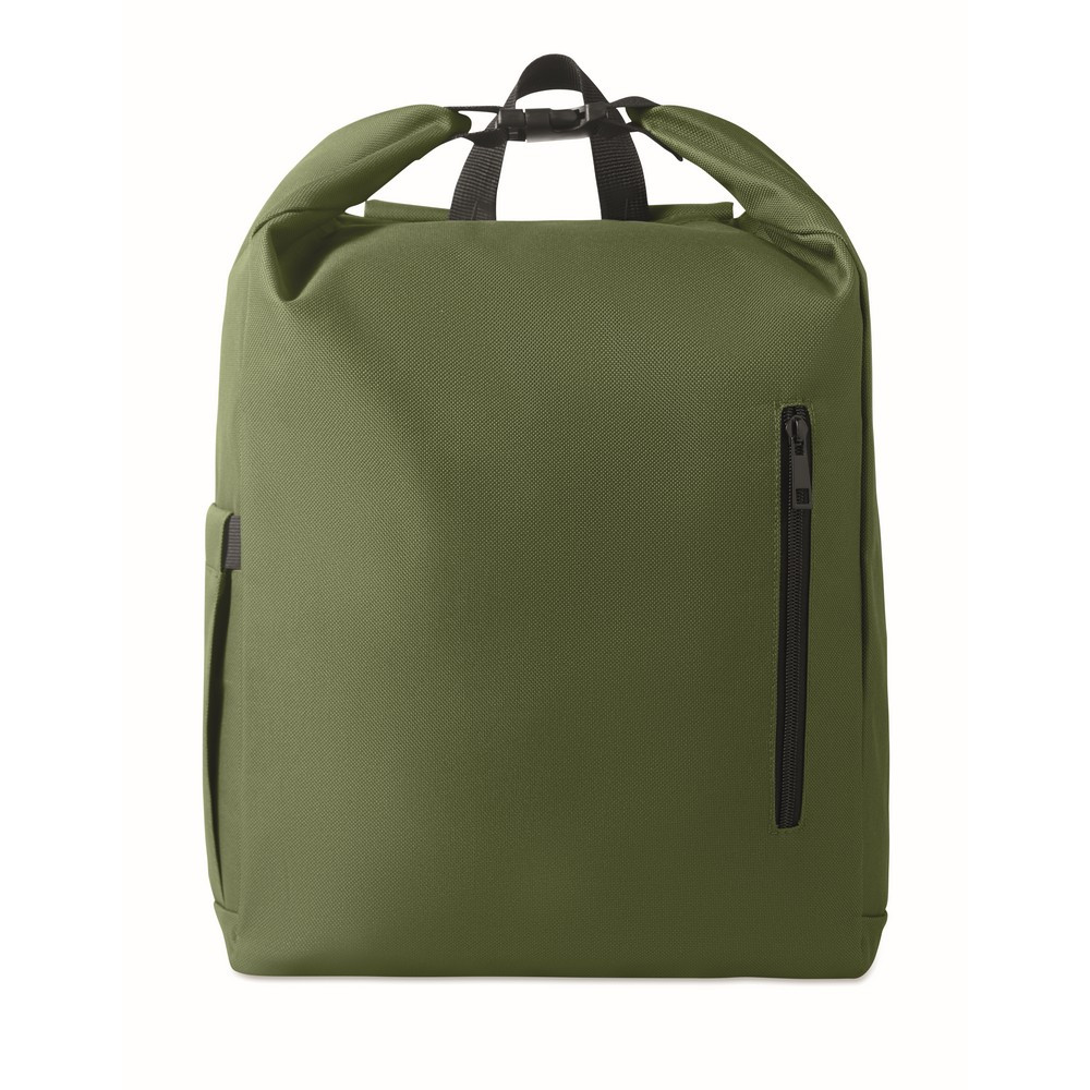 Rucsac laptop rolltop de 15 inch fabricat din poliester RPET 600D captusit RPET 210D.