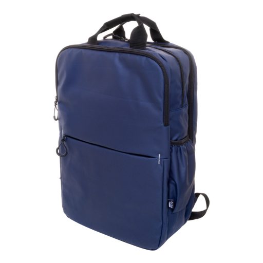 Rucsac impermeabil din RPET cu 2 compartimente cu fermoar, 2 buzunare frontale cu fermoar, buzunare laterale si compartiment captusit pentru laptop (16").
