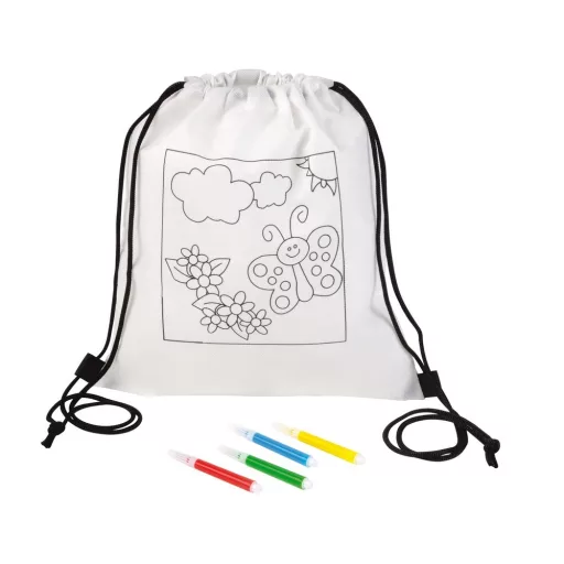 Rucsac pentru colorat COLOURFUL HOBBY: rucsac cu barete pentru umar, cu model imprimat si 4 carioci pentru colorat.