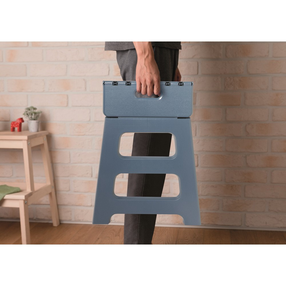Taburet portabil pliabil fabricat din plastic PP cu suprafata antiderapanta.