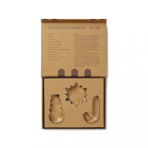 Vine ambalat intr-o cutie cadou, cu o reteta suedeza de prajituri cu ghimbir imprimata pe interiorul capacului.