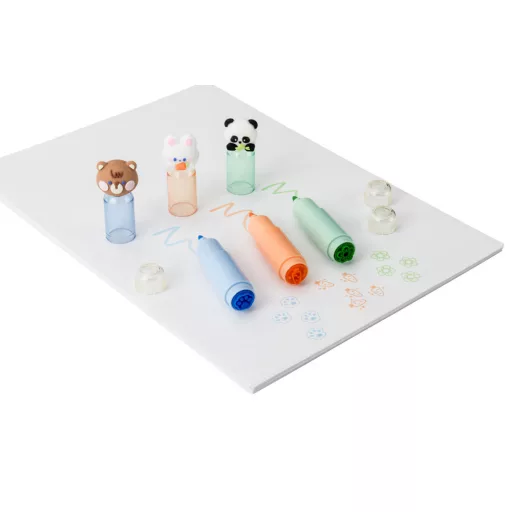 Fiecare marker are o stampila in partea de jos si un capac cu o figurina.