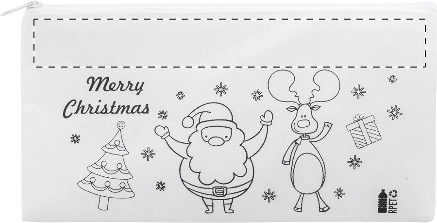 Penar de colorat cu design de Craciun din material netesut RPET, cu inchidere cu fermoar si 5 creioane colorate.