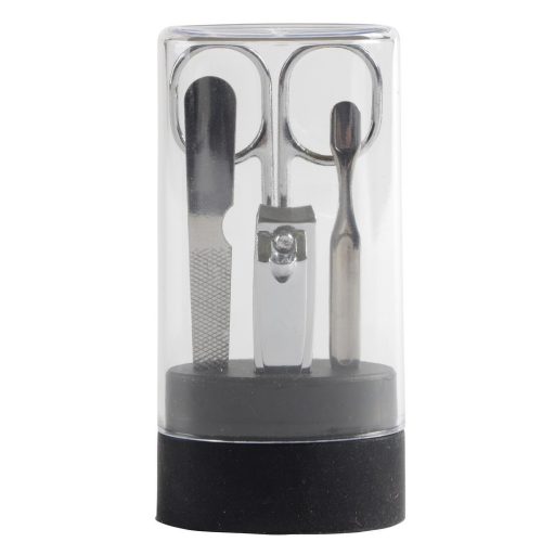 Set manichiura LYON, 4 pcs, plastic, otel, silicon, negru, transparent