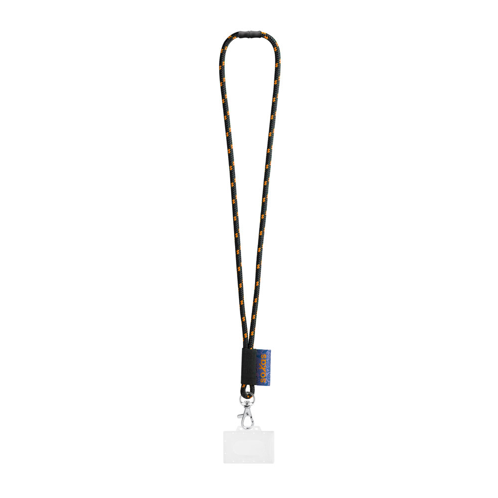 Acest lanyard lung Nautic include urmatoarele accesorii si extra-uri: elastic negru, eticheta sublimata 43 x 22 mm, carabina Standard, incuietoare de siguranta ø7 mm si suport rigid pentru carduri 86 x 54 mm.