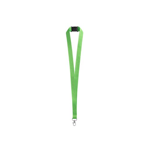 Lanyard din poliester cu carabina metalica si incuietoare de siguranta.