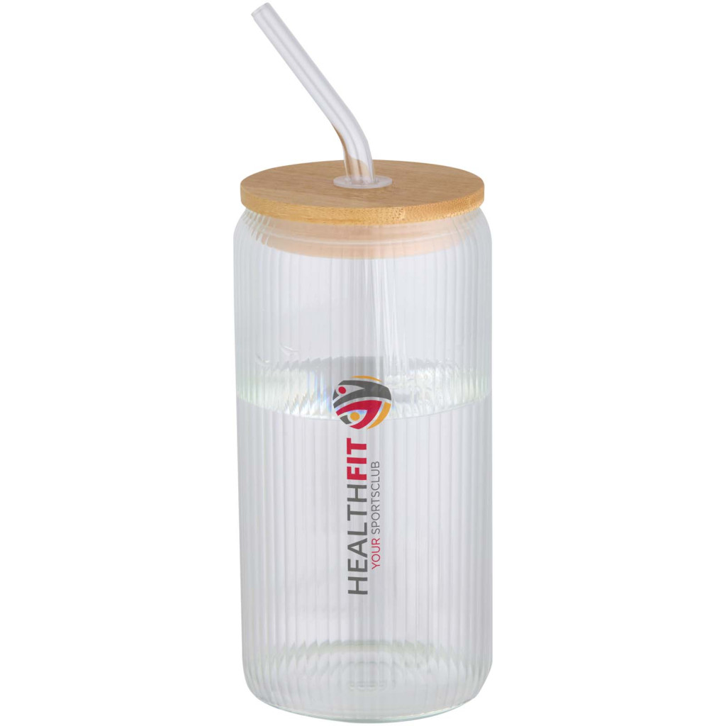 Borcan din sticla borosilicata cu pai de sticla si capac din bambus.