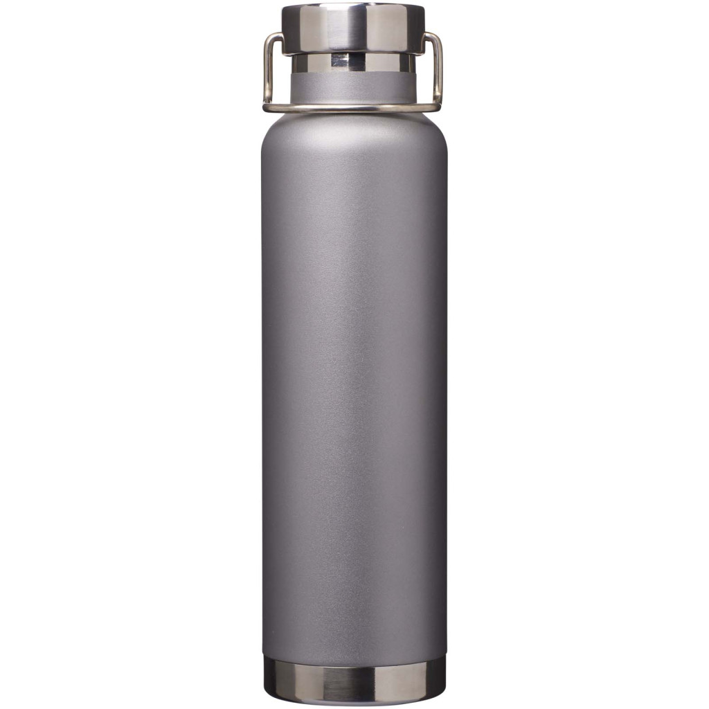 Sticla cu pereti dubli din otel inoxidabil reciclat, certificata RCS, cu izolatie in vid din cupru, ceea ce inseamna ca mentine bauturile calde timp de 12 ore si reci timp de 48 de ore.