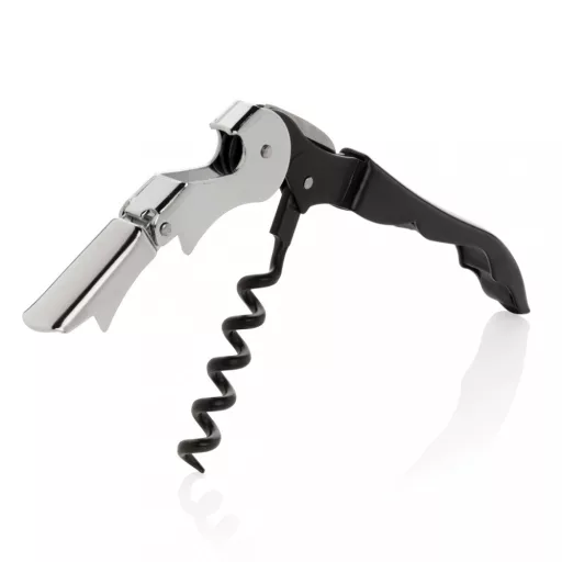 Acest tirbuson de chelner are un design clasic, cu o lama de taiat folie, un dispozitiv de ridicare a dopurilor in doua etape si un desfacator de sticle.