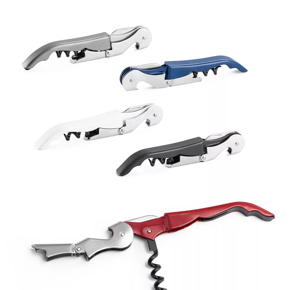 Tirbuson metalic si PP cu desfacator de sticle, cutit de somelier si spirala din otel inoxidabil.121 x 20 x 12 mm