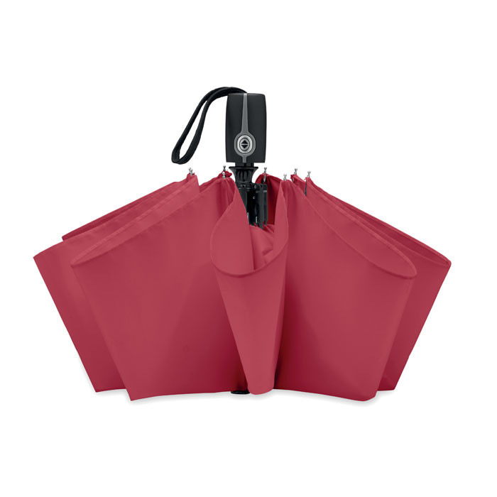 Umbrela de lux cu deschidere automata, 21 inchi, poliester satinat 190T, ax metalic zincat, spite negre cu fribra de sticla in 2 sectiuni, terminatii metalice cromate, maner negru cauciucat cu eticheta epoxidica.