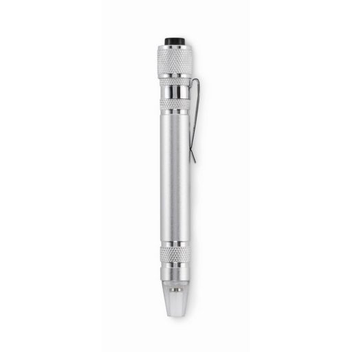 Unealta multifunctionala din aluminiu reciclat in forma de Pix cu lanterna.