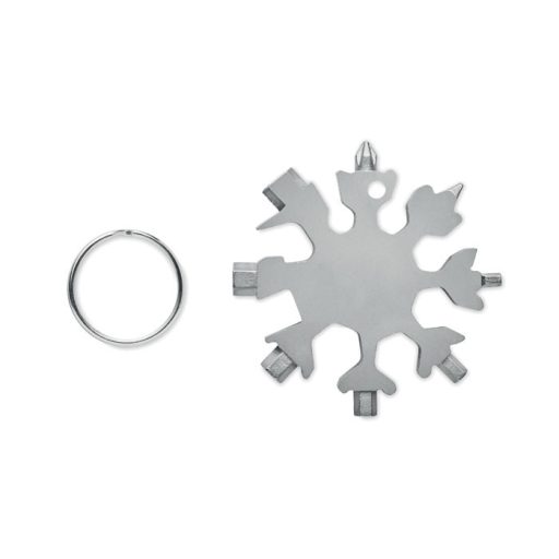 Unealta multifunctionala 17 in 1 din otel inoxidabil in forma de fulg de zapada.