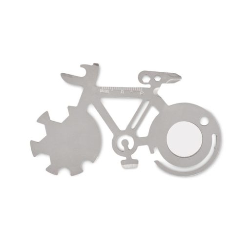 Multitool 11 in 1 din otel inoxidabil in forma de bicicleta.