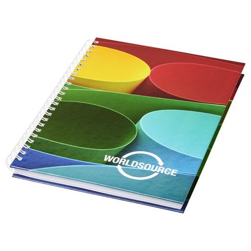 Caiet A4 cu coperta rigida, cu fir metalic.